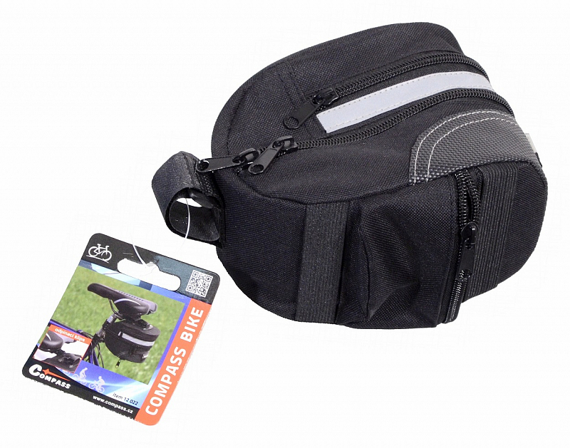 Na zip uzavíratelná brašna pro montáž pod sedlo jízdního kola. Je vybavená klipem, díky kterému lze brašnu snadno sejmout. Je vyrobena z vodoodpudivého materiálu a po obvodu opatřena reflexním páskem. Na spodní straně dva gumové popruhy pro upevnění dalších drobností k brašně.