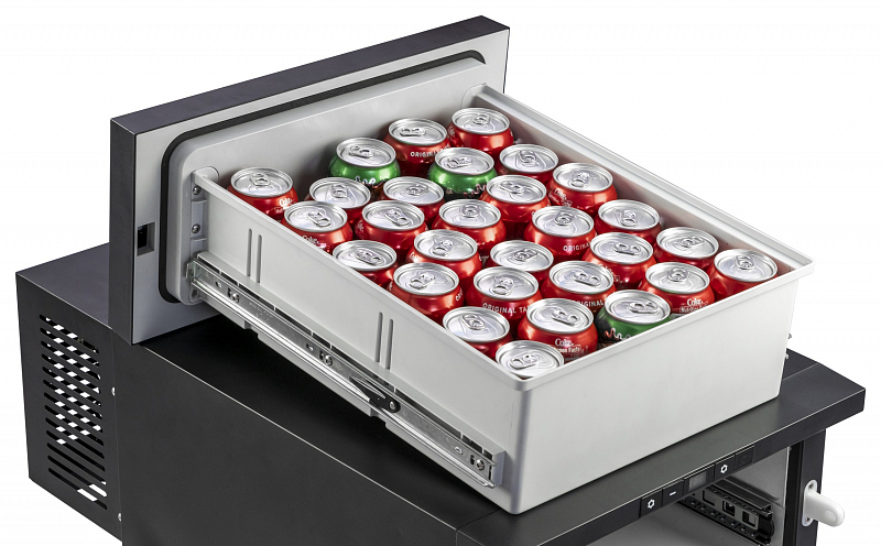 Vestavný chladicí box může být napájen z 12 V nebo 24 V zástrčky automobilů či lodí. Je vybaven výkonným kompresorem s chladicím médiem a lze jej použít jako chladničku s teplotou 0 – 10°C, ale i jako mrazicí box s teplotou až -20°C.