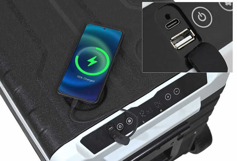 Vnější plášť je proveden z odolného plastu, který spolu s perfektní izolací zajišťuje dlouhodobé zachování stabilní teploty uvnitř boxu a zaručuje velmi nízkou spotřebu energie. Okraj ovládacího panelu je doplněn o krytou USB zásuvku pro napájení zařízení s USB konektorem.