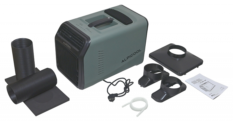 Výkonná přenosná klimatizace s napájením z běžné zásuvky 230V.