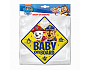 Cedulka s přísavkou Baby on board. Přichycení na okno v autě pomocí průhledné přísavky.