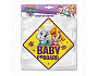 Cedulka s přísavkou Baby on board. Přichycení na okno v autě pomocí průhledné přísavky.