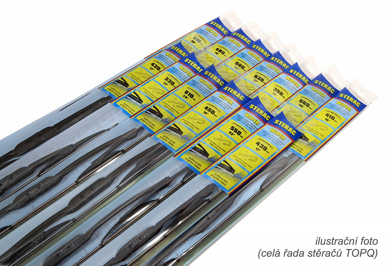 Masivní kvalitní celokovový stěrač TOP Q s grafitovým břitem. Tento stěrač je konstruován s vyváženým počtem vahadel tak, aby zajistil dokonalý přítlak a spolu s grafitovým břitem i dokonalé stírání s dlouhou životností.