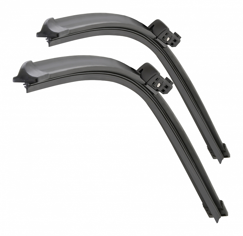 Sada dvou plochých stěračů FLAT (řidič + spolujezdec) se speciálním uchycením. Délky stěračů a systém uchycení na ramínko jsou přizpůsobeny vybraným vozům (viz tabulka použití).