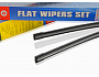 Sada dvou plochých stěračů FLAT (řidič + spolujezdec) se speciálním uchycením. Délky stěračů a systém uchycení na ramínko jsou přizpůsobeny vybraným vozům (viz tabulka použití).