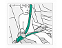 Dítě se připoutá pomocí samonavíjecích 3-bodových bezpečnostních pásů vozidla. Samotný podsedák se umístí ve vozidle na zadní sedadla čelem ve směru jízdy.