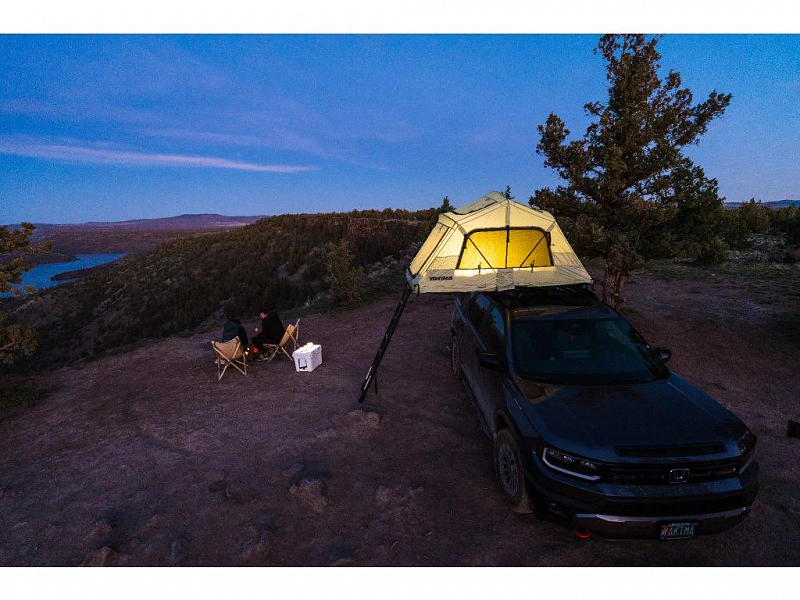 Lehký a pevný softshellový autostan Yakima SkyRise SL MD Green pro 2 osoby.